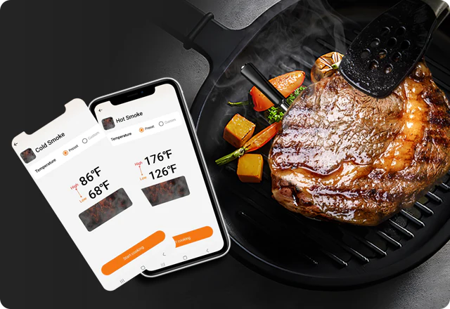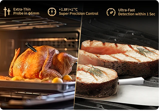 Термометр підтримує WiFi 5G та Bluetooth 5.4, що забезпечує віддалений моніторинг і робить процес приготування - від грилю до щоденних страв - більш зручним і приємним. Ви можете контролювати температуру дистанційно, не повертаючись постійно до гриля чи духовки, що особливо цінно під час барбекю або домашнього готування.