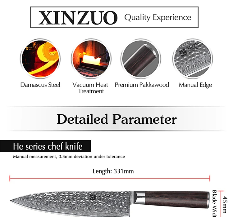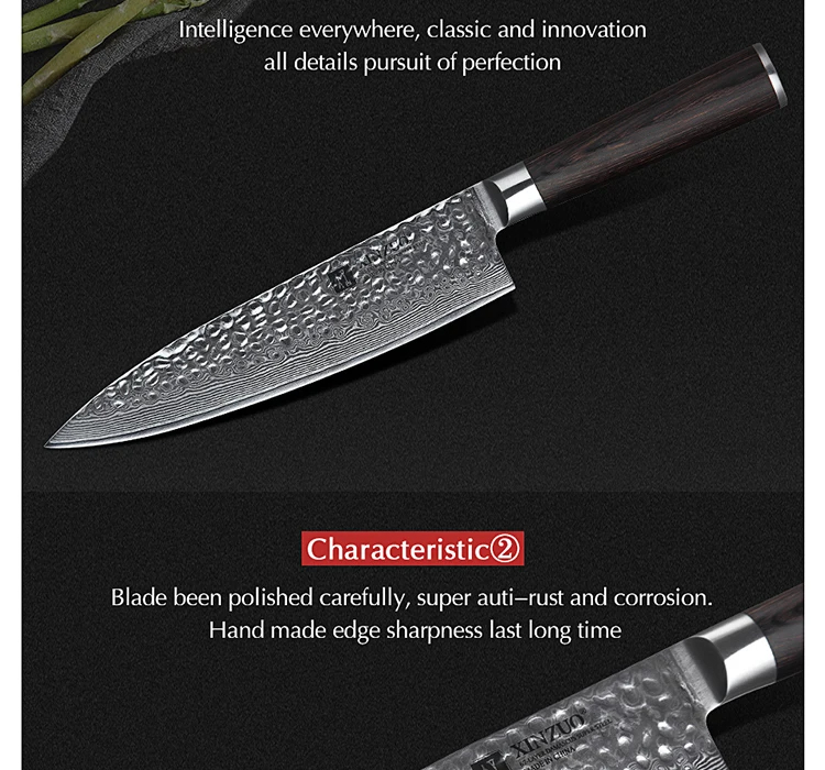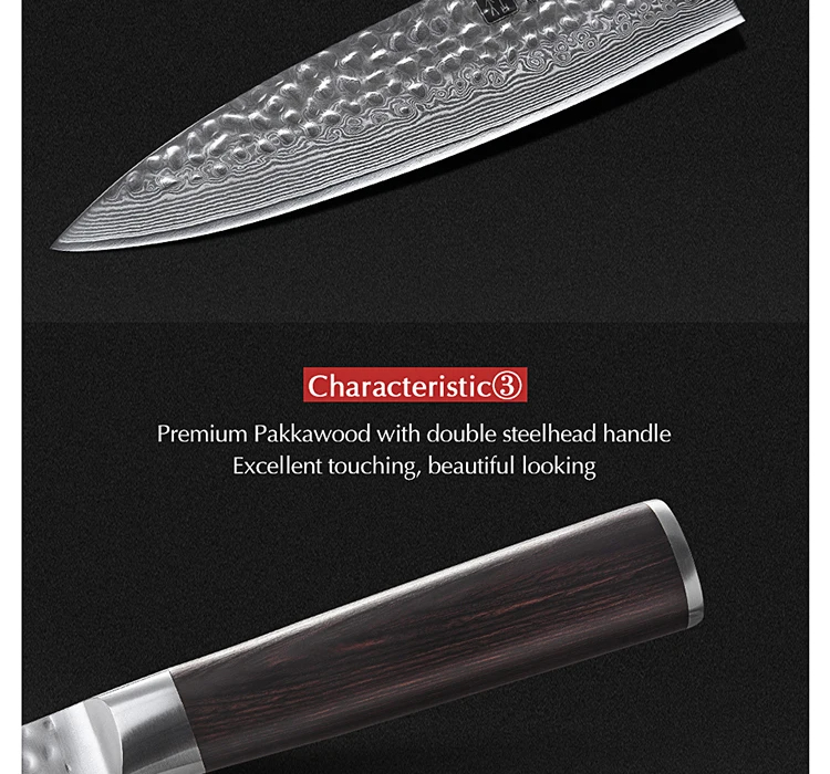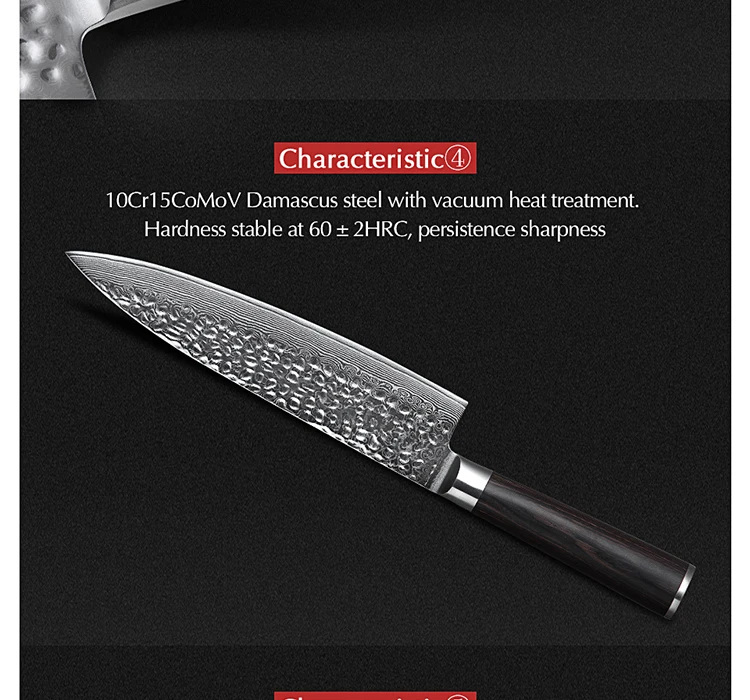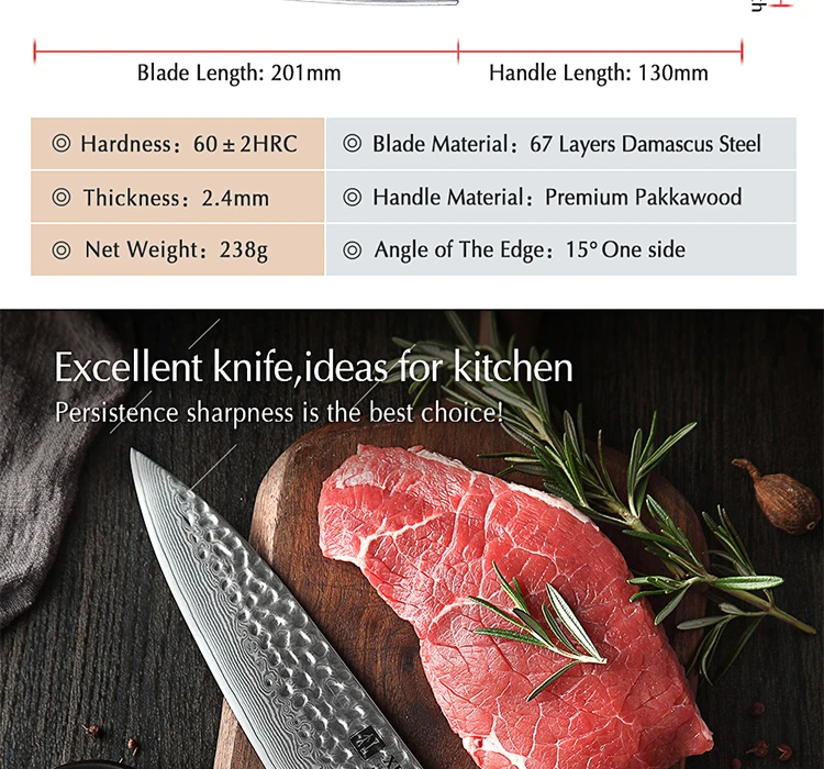 Матеріал леза: дамаська нержавіюча сталь 67 шарів із сердечником 10Cr15CoMoV