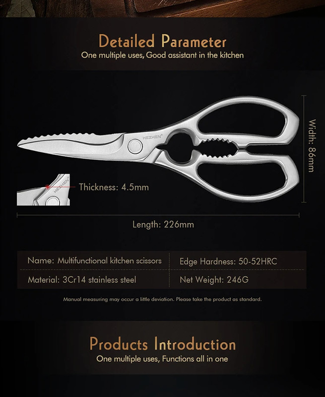 Кухонні ножиці XINZUO з нержавіючої сталі 3Cr13 харчові багатофункціональні (ZEN713)