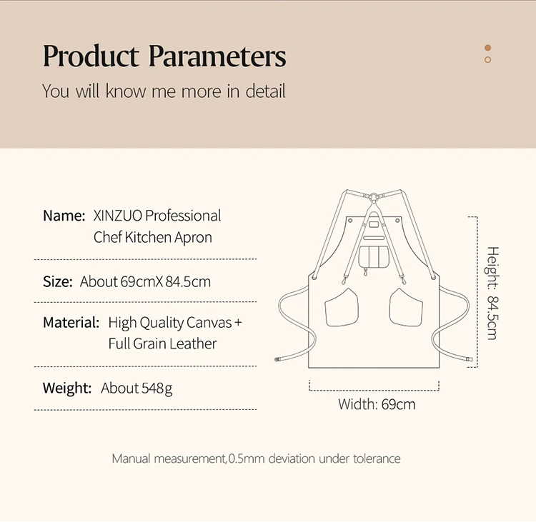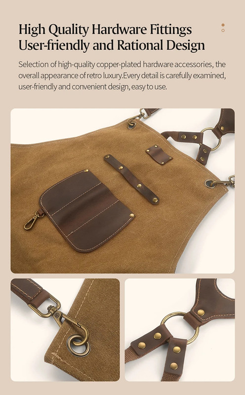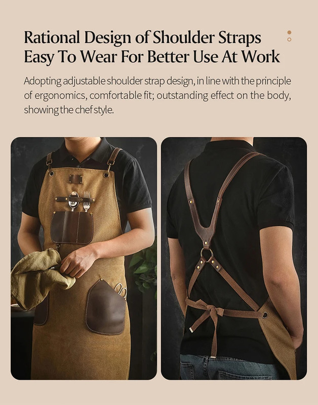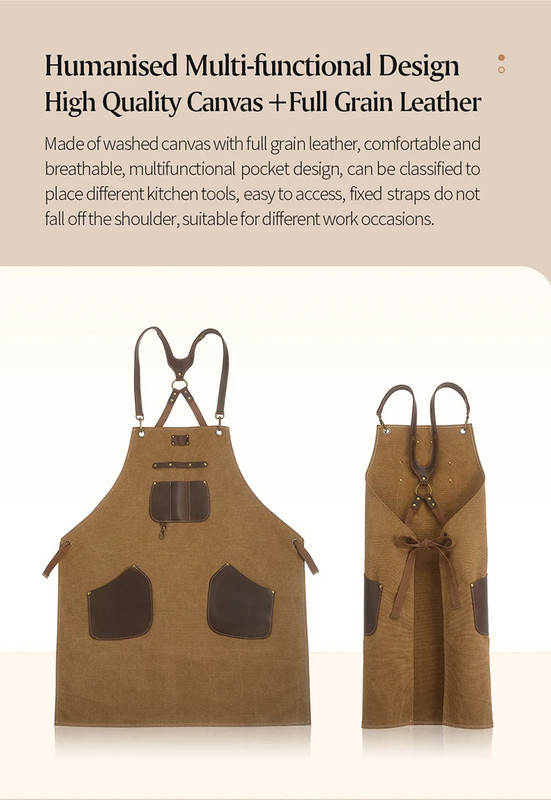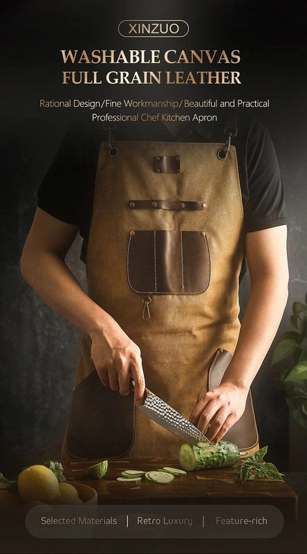 Фартух кухонний XINZUO коричневий, канвас та шкіра (ZEN722)